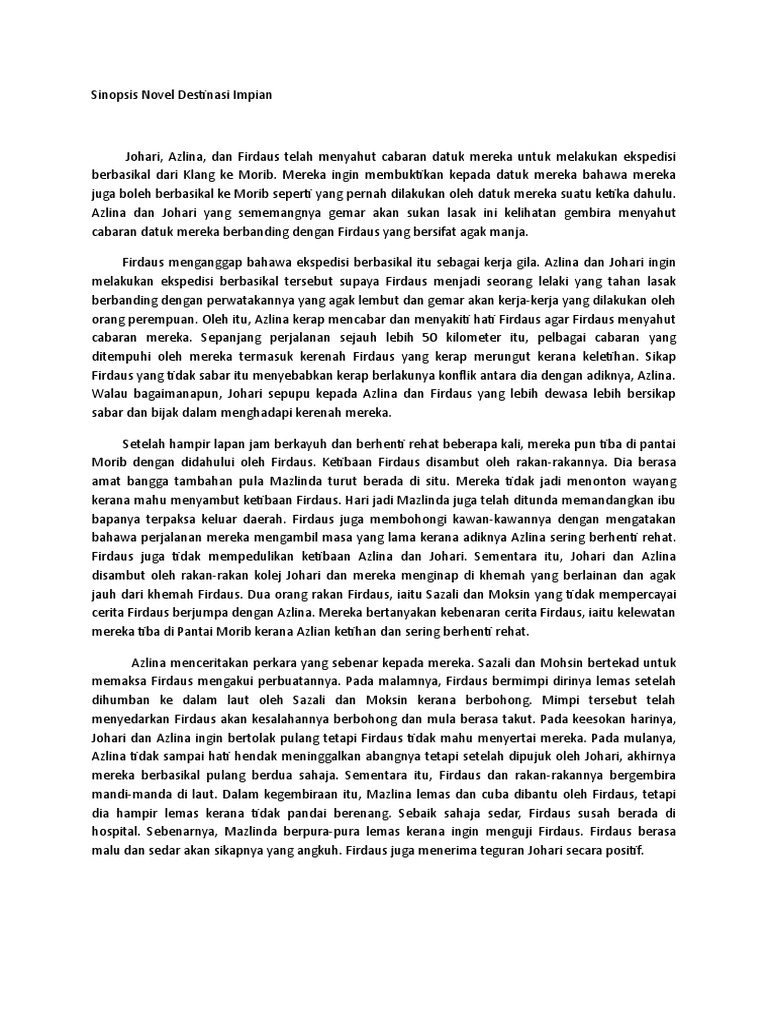 Puedes hacer los ejercicios online o descargar la ficha como pdf. Start studying novel destinasi impian. Bahasa melayunovel destinasi impian (komsas) novel destinasi impian. Sampingan yang terdapat dalam novel. Destinasi impian tingkatan 1 book.